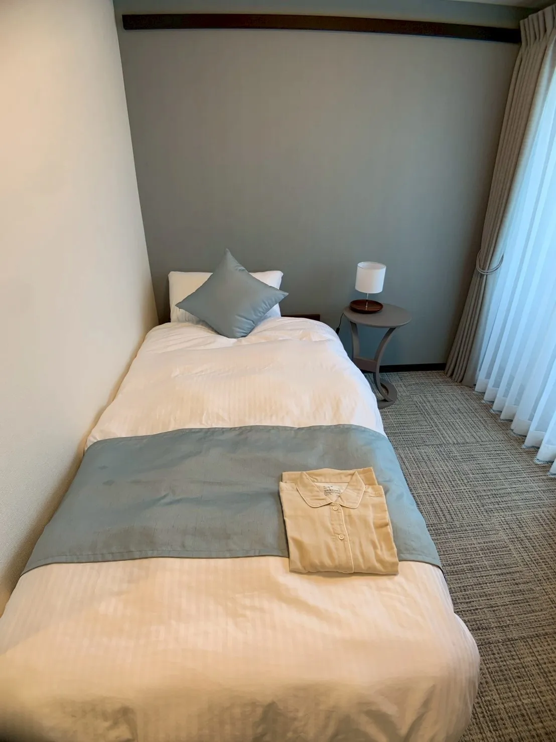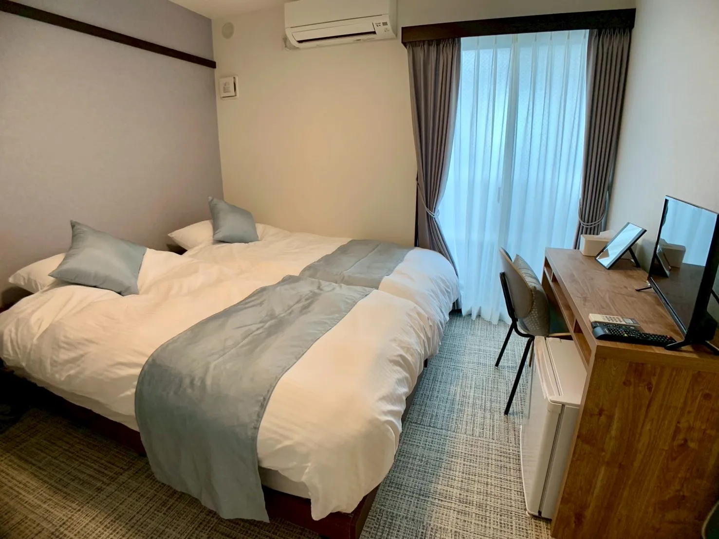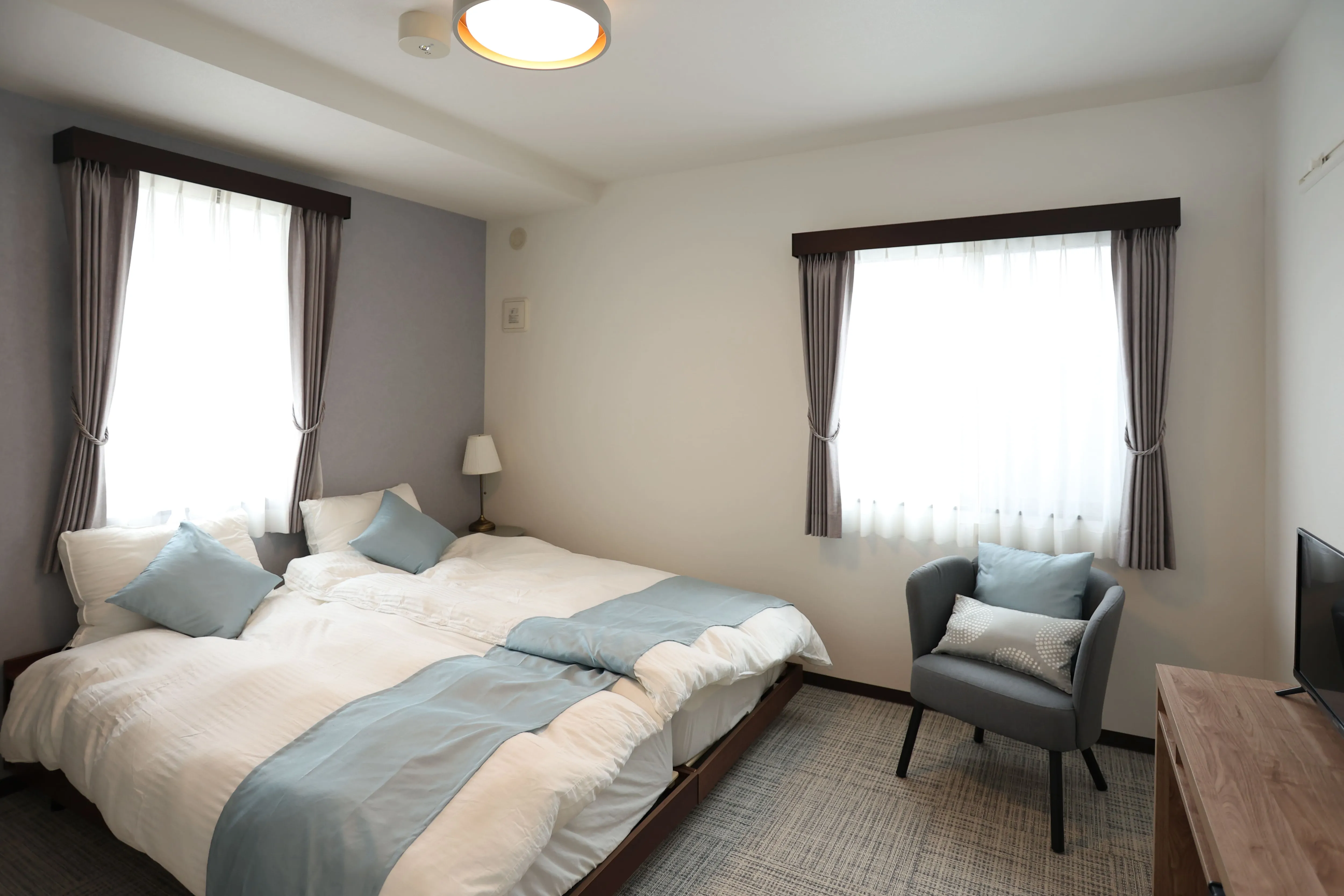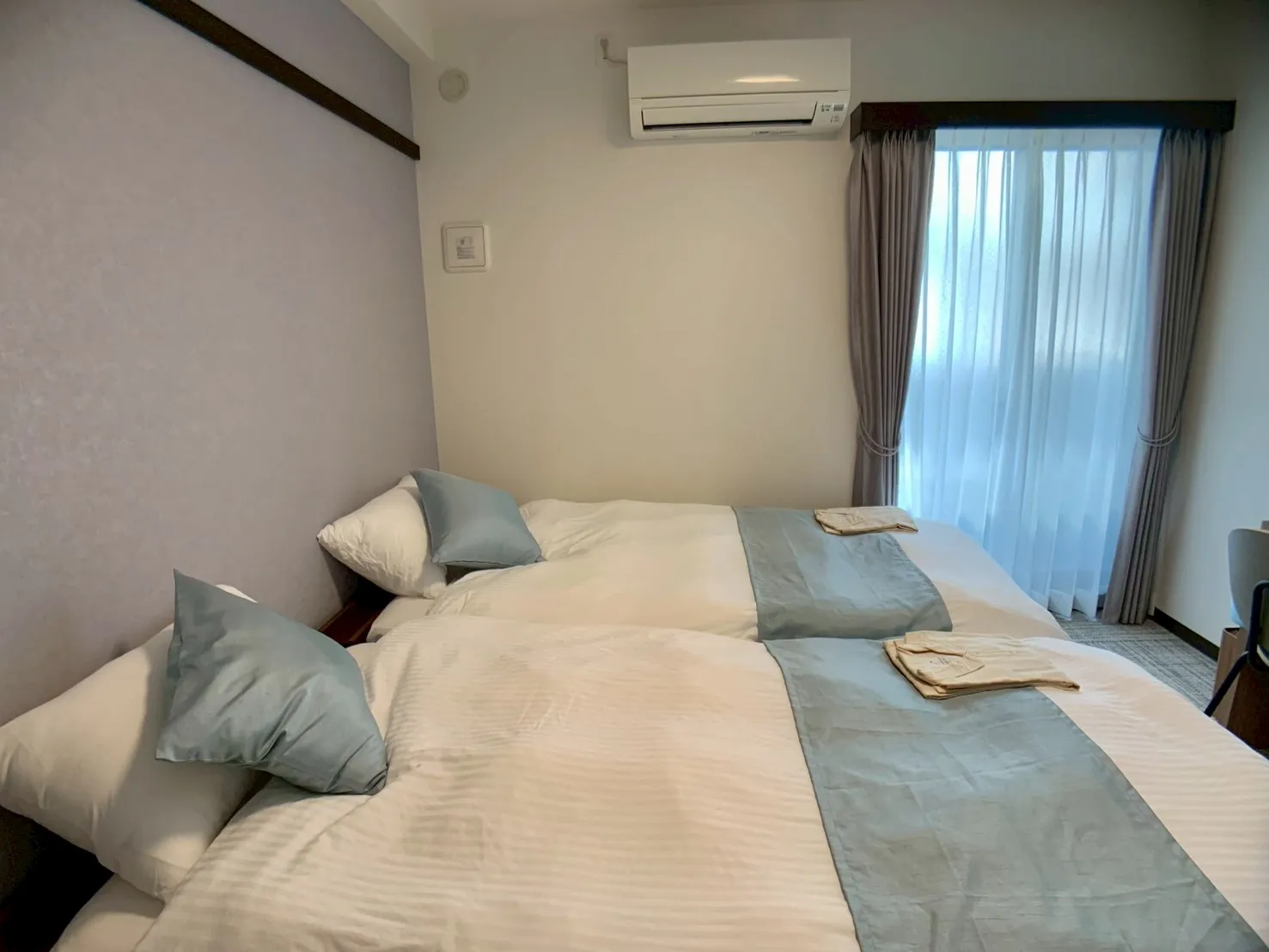 シングルベッド2台を備えた客室です。専用のトイレ・洗面台・シャワーをご利用いただけます。