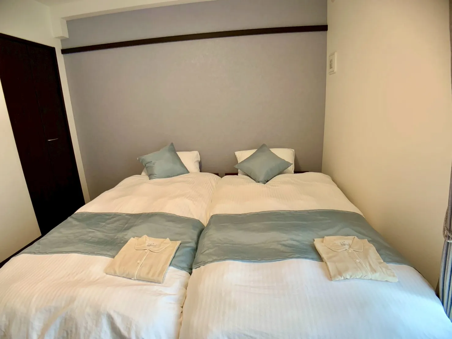 シングルサイズの布団2台を備えた客室です。専用のトイレ・洗面台・浴槽をご利用いただけます。