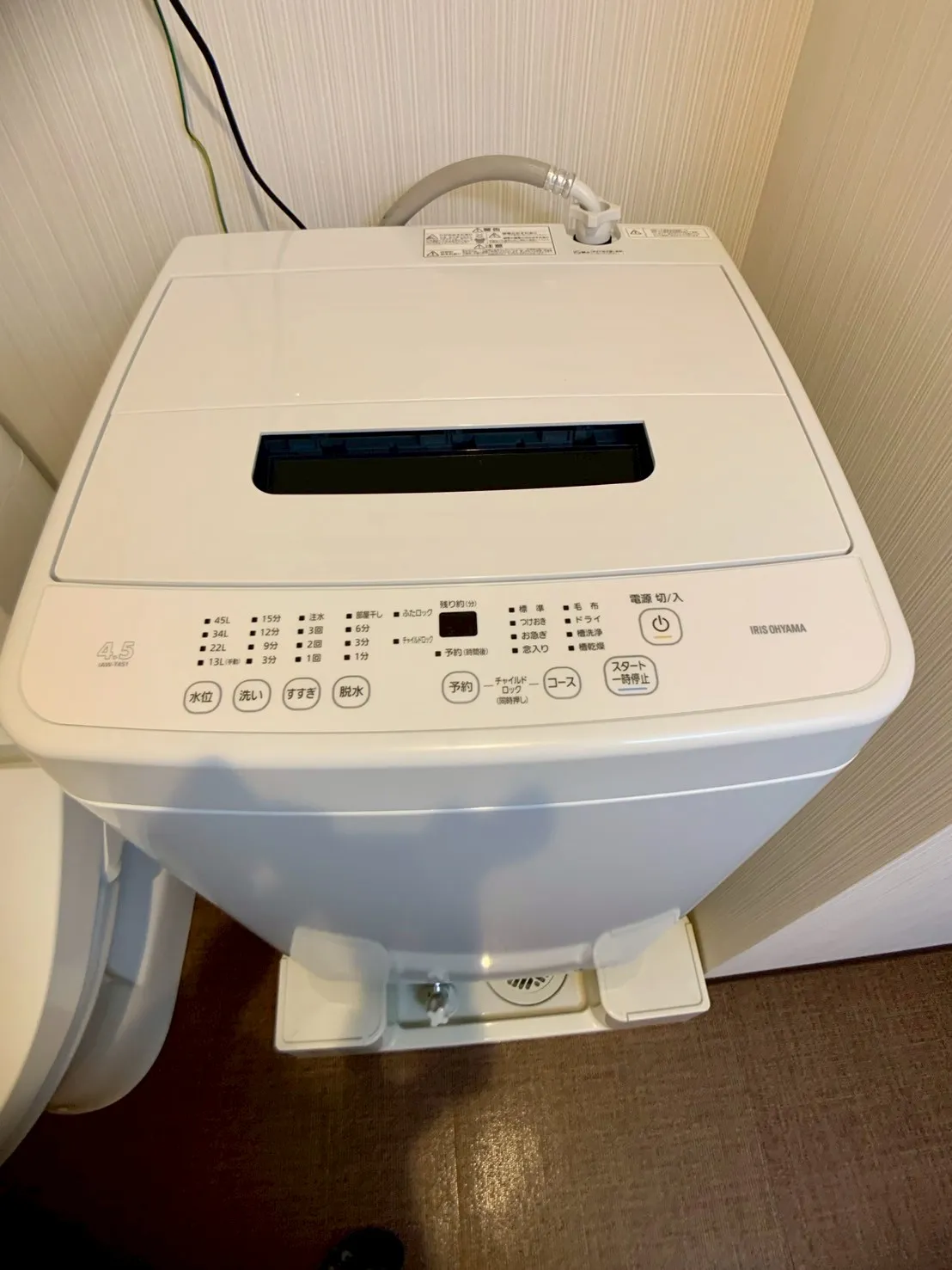 全客室に洗濯機を備えております。乾燥機能は浴室乾燥をご利用ください。