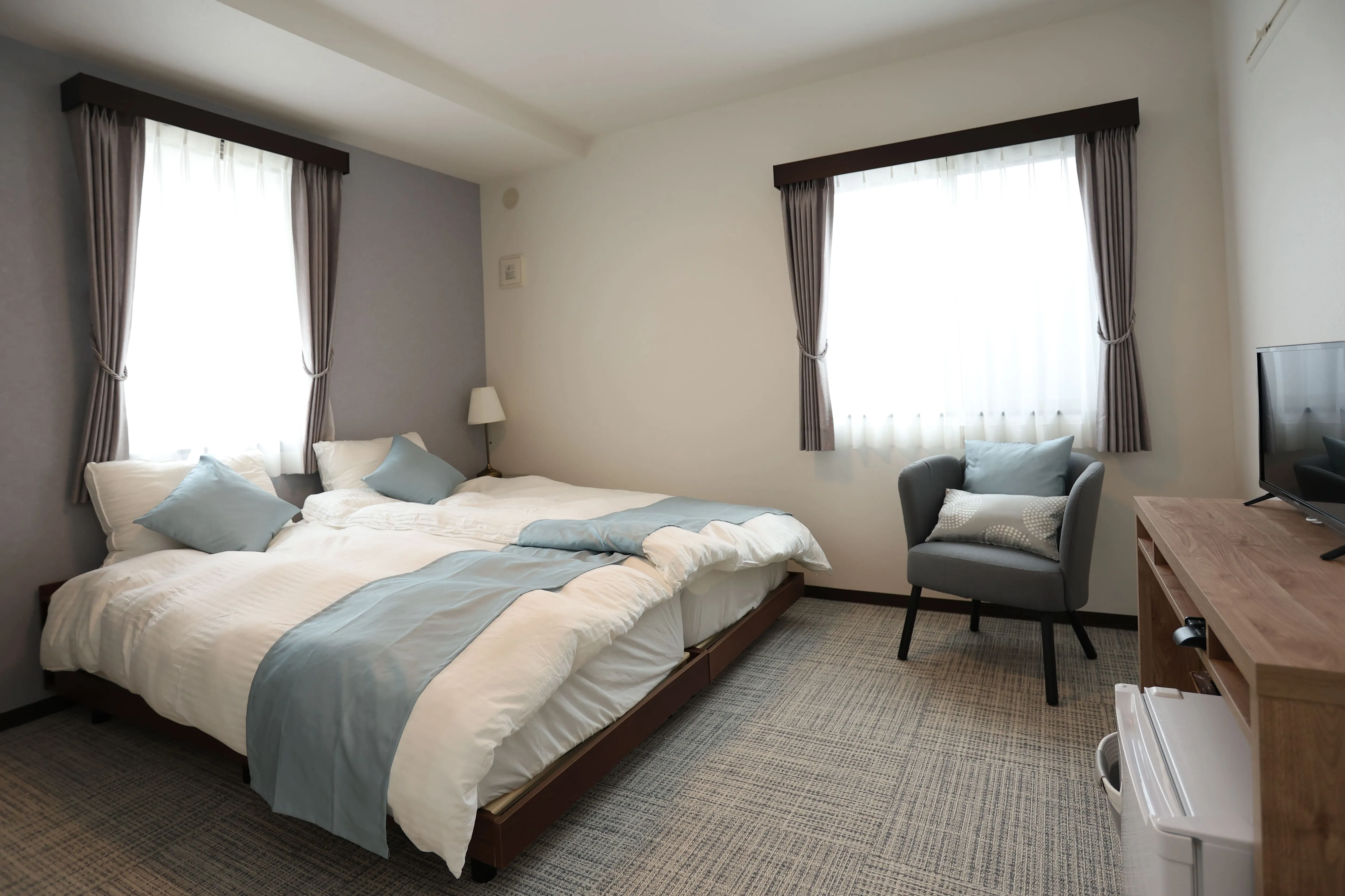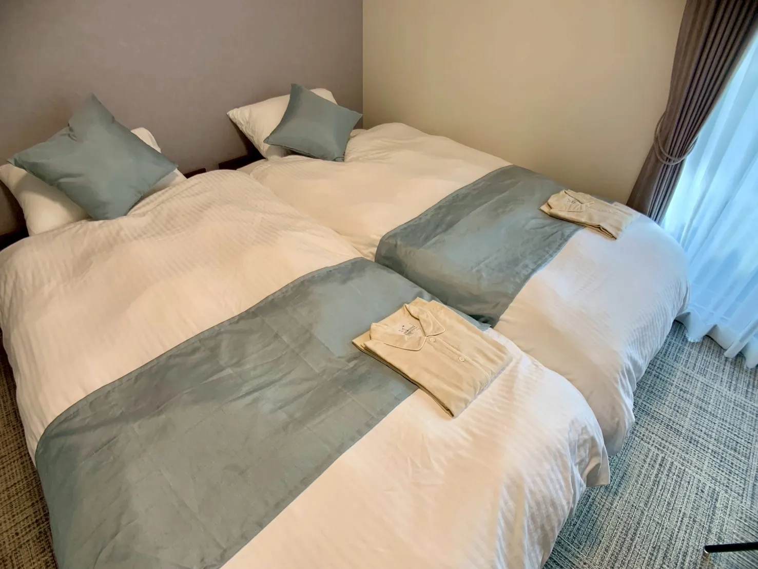 シングルベッド2台を備えた客室です。専用のトイレ・洗面台・シャワーをご利用いただけます。