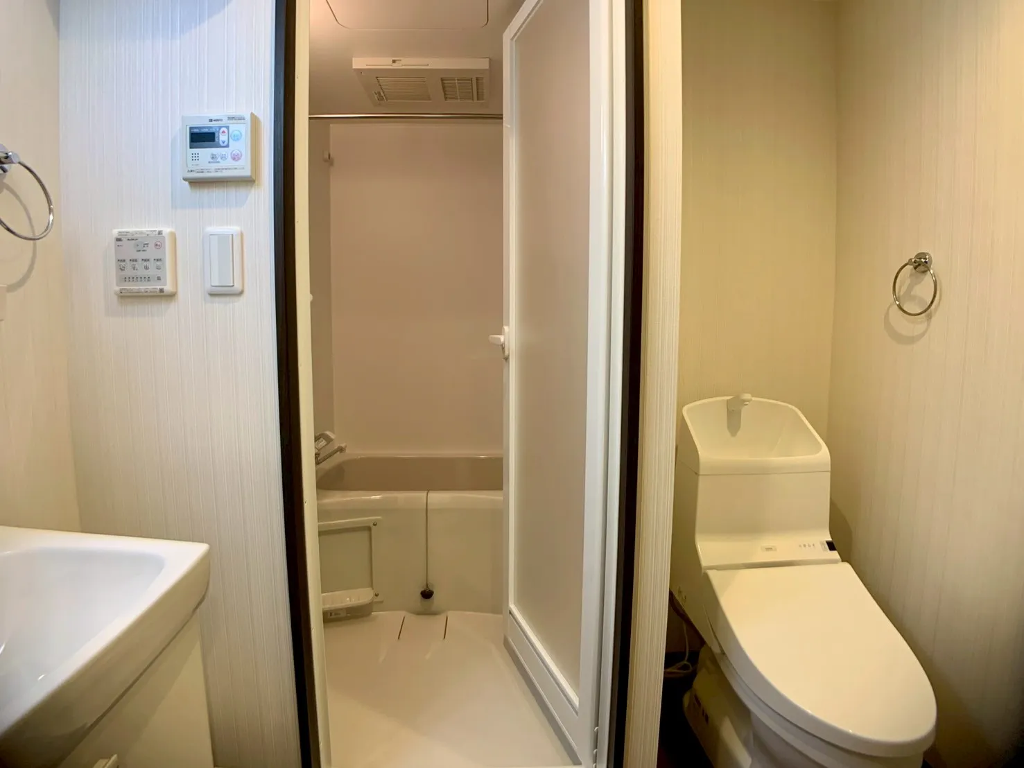 全客室に洗濯機を備えております。乾燥機能は浴室乾燥をご利用ください。